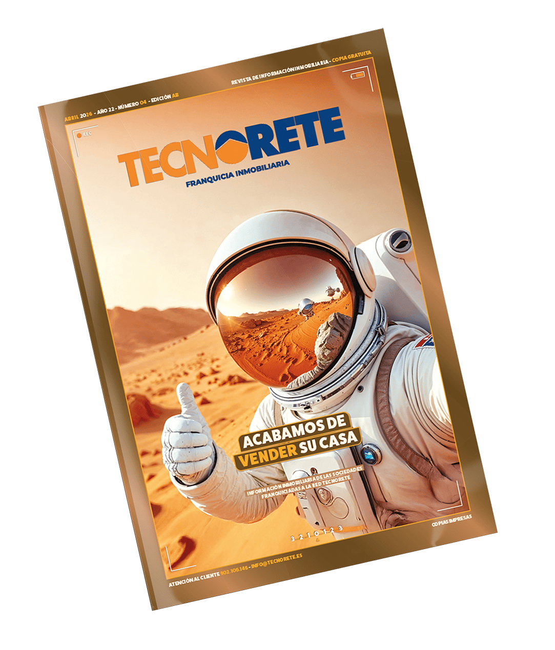 Consulta nuestra revista inmobiliaria directamente desde tu dispositivo móvil u ordenador. Si quieres una revista impresa, acércate a tu oficina Tecnorete y recoge una copia gratuita de la publicación de mayor distribución del sector inmobiliario.